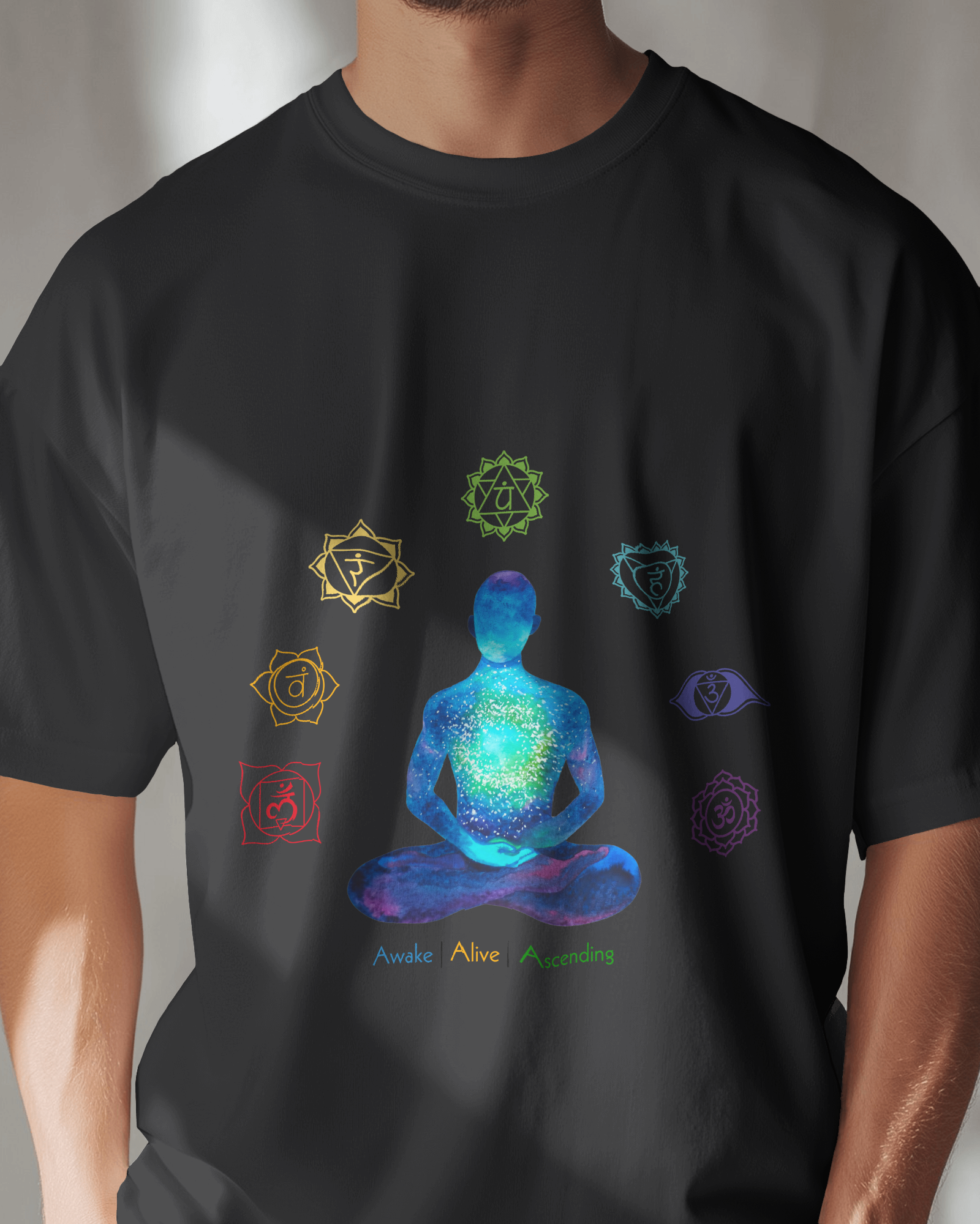 This soft, breathable tee features a bold Seven Chakra print β aligning style with soul. Perfect for yoga, meditation, or everyday grounding.